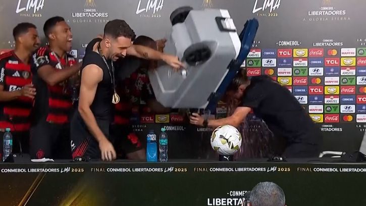 La festa dei giocatori del Flamengo dopo la Libertadores! L’intera ghiacciaia addosso a Filipe Luis