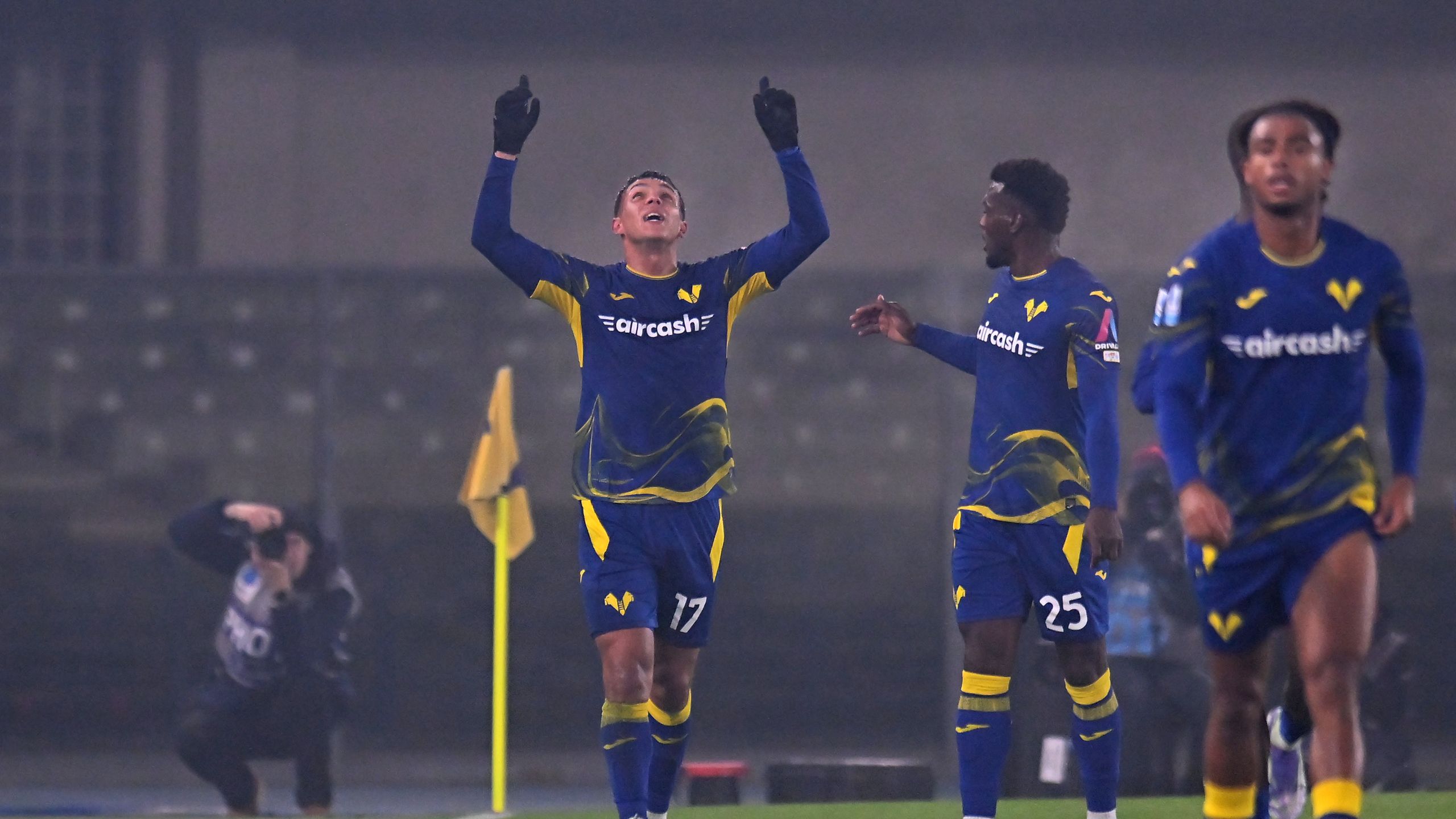 La nebbia è intanto scesa completamente sul Bentegodi. Da diversi minuti si sta vedendo ormai poco.