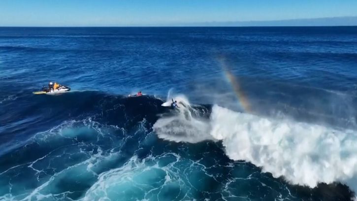 Moment: World Record : Enever achieves biggest paddle-in wave ever surfed by a woman